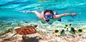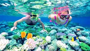 In the Maldives, what lies under the water is an absolute wonder of nature. Exceptional and easily accessible underwater life makes Maldives one of the world’s top snorkelling destinations The reefs that surround the islands and Atolls are just as abundant in variety of coral as the marine creatures that live in and around them. Sometimes you don’t need a mask or fins to see the striking fish playing in their coral nest. The water is so clear, that it looks as though you are looking through a glass aquarium. Snorkelling over the shallow clear water of the island lagoon or at the edge of the reef is an ideal way to explore the underwater world. House reefs of most islands are a few meters away from the beach. This, coupled with amazingly clear water, makes snorkelling in the Maldives a unique experience that one should not miss out on.